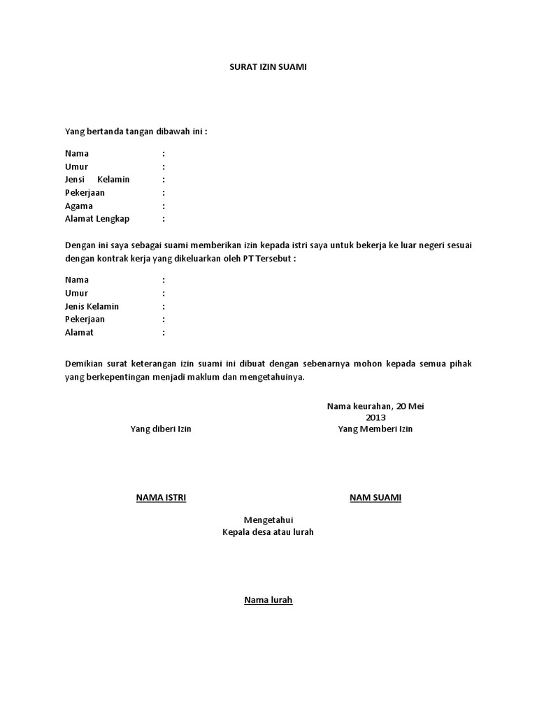 Contoh Surat Izin Suami Untuk Istri Bekerja Download File Docx Neicy Tekno